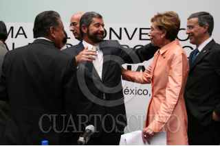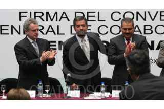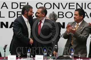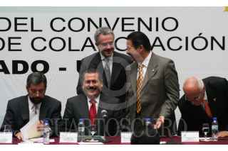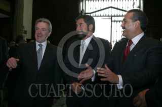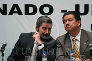MÉXICO D.F. 24ABRIL2007.- Los legisladores Manlio Fabio Beltrones, Carlos Navarrete y el rector de la UNAM, Juan Ramón de la Fuente, durante la firma de convenio entre la UNAM y el Senado. FOTO: PAOLA HIDALGO/CUARTOSCURO.COM