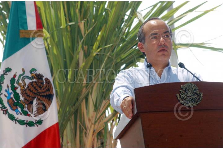 MUNICIPIO DE TLALTIZAPAN, MORELOS. 24 DE ABRIL DEL 2007. EL PRESIDENTE DE LOS ESTADOS UNIDOS MEXICANOS, FELIPE CALDERON HINOJOSA, DURANTE LA PRESENTACION DEL PROGRAMA NACIONAL DE LA AGROINDUSTRIA DE LA CAÑA DE AZUCAR, QUE TUVO LUGAR EN ESTE MUNICIPIO. FOTO ARIEL GUTIERREZ