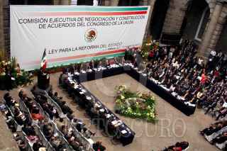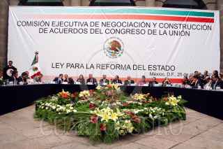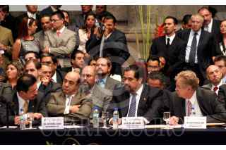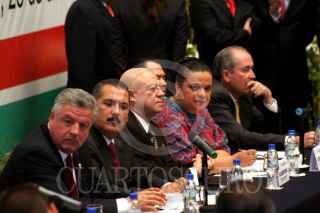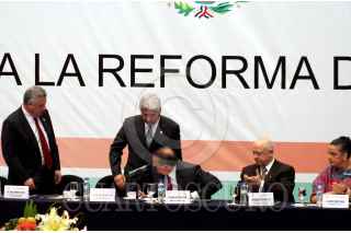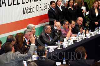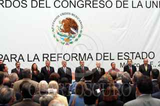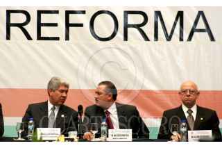 MÉXICO, D.F., 25ABRIL2007.- El líder de la bancada del PRD en el Senado, Carlos Navarrete, el senador Jesús Murillo Karam, y los líderes de la bancada del PAN y PRD en la Cámara de Diputados, Héctor Larios y Javier González Garza, respectivamente, durante la instalación de la comisión para la Reforma del Estado. FOTO: ISAAC ESQUIVEL/CUARTOSCURO.COM