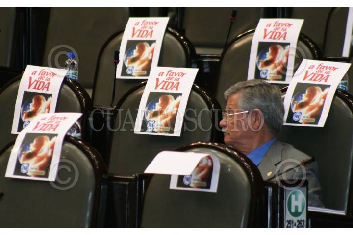 MÉXICO, D.F. 25ABRIL2007.- Legisladores perredistas colocaron letreros con la leyenda "Si se pudo" sobre las curules en la sesión en la Cámara de Diputados, ante la aprobación de la despenalización del aborto. FOTO: PAOLA HIDALGO/CUARTOSCURO.COM