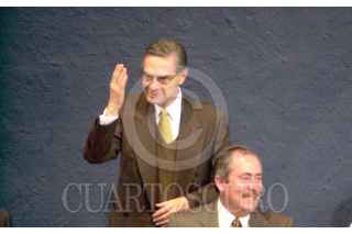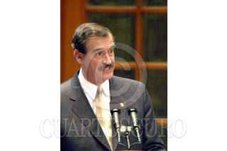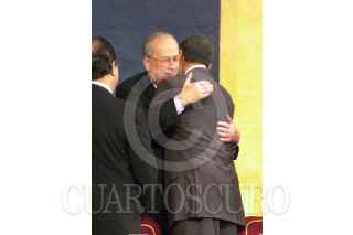 Vicente Fox saluda al gobernador Zacatecano Ricardo Monrreal después de la presentación del Programa Nacional de Turismo 2001-2006. FOTO: Victoria Valtierra/CUARTOSCURO.COM