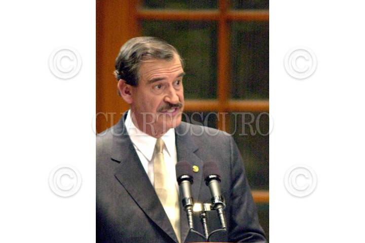 Vicente Fox saluda al gobernador Zacatecano Ricardo Monrreal después de la presentación del Programa Nacional de Turismo 2001-2006. FOTO: Victoria Valtierra/CUARTOSCURO.COM