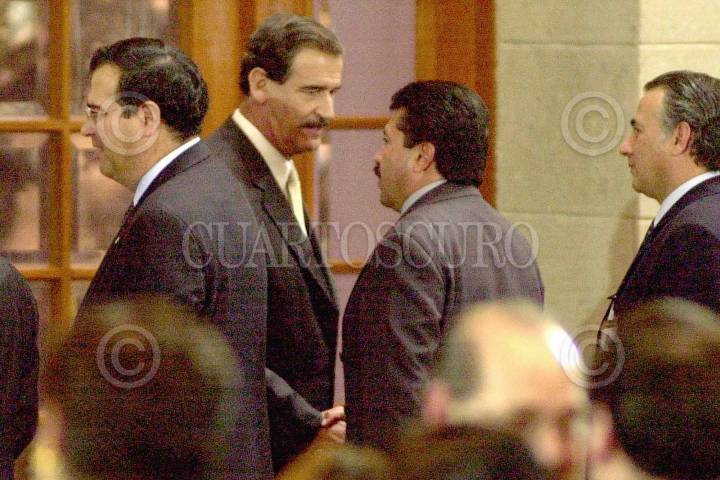Vicente Fox saluda al gobernador Zacatecano Ricardo Monrreal después de la presentación del Programa Nacional de Turismo 2001-2006. FOTO: Victoria Valtierra/CUARTOSCURO.COM