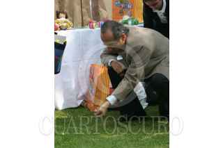 MÉXICO, D.F., 30ABRIL2007.- Felipe Calderón Hinojosa, Presidente de la República, se divirtió con niños jugando a las canicas durante el convivió que se organizó en la Presidencia de la República con motivo del Día del Niño. FOTO. MOISÉS PABLO/CUARTOSCURO.COM