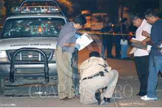 CUERNAVACA, MORELOS30ABRL2007.- Dos policias preventivos metropolitanos fueron asesinados a tiros uno resulto gravamente herido al ser rafagueados anoche cuando hacian sus recorridos de vigilacia en la patrulla 1223, en la colonia las grangas por unos desconocidos que viajaban en un vehículo rojo. FOTO: JORGE ARTURO GARCÍA/CUARTOSCURO.COM