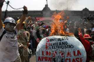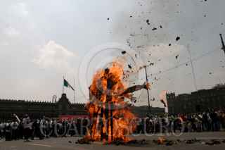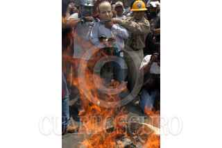 MÉXICO, D.F., 01MAYO2007.- Integrantes de varios sindicatos adherentes a la Unión Nacional de Trabajadores quemaron unos monigotes alusivos al presidente de la república enfrente de la Cátedral Metropolitana. FOTO: MOISÉS PABLO/CUARTOSCURO.COM