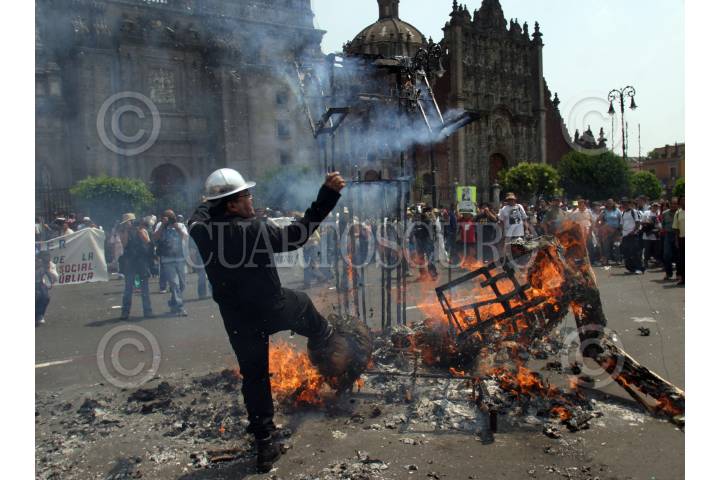 MÉXICO, D.F., 01MAYO2007.- Los dirigentes Francisco Hernández Juárez, Valdemar Gutierrez y Agustín Rodríguez, durante su participación del mitín que organizo la Unión Nacional de Trabajadores en el zócalo con motivo del Día del Trabajo. FOTO: MOISÉS PABLO/CUARTOSCURO.COM