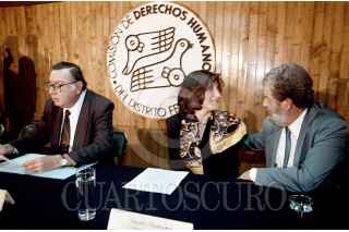 Consejeros de la Comisión de Derechos Humanos del Distrito Federal, en voz de Miguel Concha (izq), exhortaron una vez más a las autoridades judiciales para que dejen libre a Paola Durante, involucrada en el asesinato del conductor Paco Stanley. Angeles Mastretta y Nestor de Buen conversan