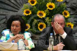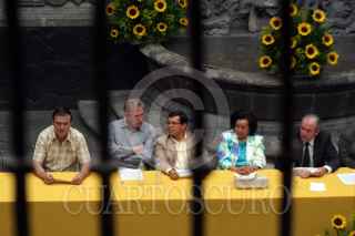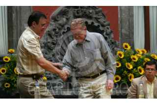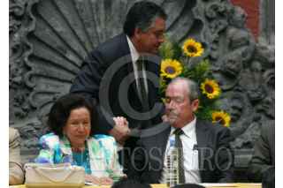 MÉXICO, D.F., 05MAYO2007.- Amalía García, gobernadora de Zacatecas platica con Guadalupe Acosta, Secretario General del PRD, durante la sesión solemne del 18 aniversario del Partido de la Revolución Democrática en el Museo de la Ciudad de México. FOTO: PAOLA HIDALGO/CUARTOSCURO.COM