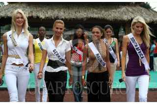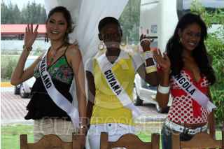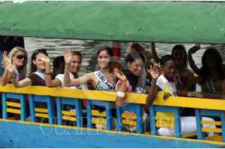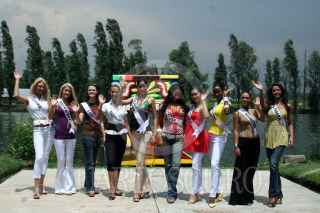 MÉXICO, D.F. 05MAYO2007.- Las participantes de Miss Universo 2007 visitaron Xoxhimilco, las representantes de: Angola, Micaela Reis, Tailandia, Fanung Tuthithum y Guyana, Meleesa Payne a su llegada. FOTO: PAOLA HIDALGO/CUARTOSCURO.COM