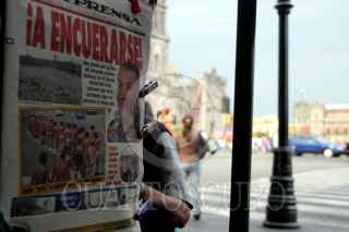 MÉXICO, D.F.05MAYO2007.-Aspecto de un diario en venta en un puesto de periodicos a un costado de la Plaza de la Constitución, previo al evento artistico de Spencer Tunick. FOTO JEFTÉ ARGUELLO/CUARTOSCURO.COM