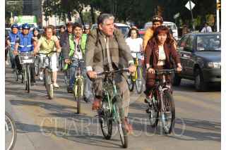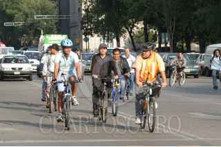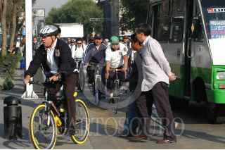 MÉXICO D.F. 07MAYO2007.- Personal del GDF llego a su centro de trabajo en bicicleta. Esta acción forma parte del programa de fomento de vehiculos que no contaminen. FOTO: GERMÁN ROMERO/CUARTOSCURO.COM