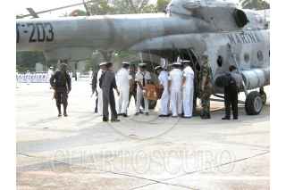 ACAPULCO, GUERRERO.,11 MAYO2007.-En un Helicóptero ,M1-17 de la Armada de México, fue bajado el féretro del, Marinero, Francisco Javier Sánchez Nava , de 19 años de edad, que fue abatido a tiros en Zihuatanejo por un comando armado que ataco un apostadero naval. FOTO: MARINO D. VALDEZ
