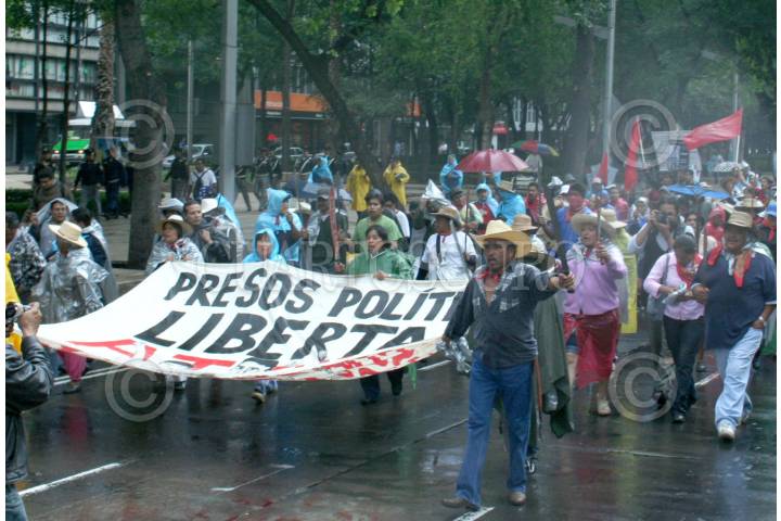 MÉXICO, D.F. 12MAYO2007.- El frente de los pueblos en defensa de la tierra en San Salvador Atenco marcharon del Àngel de la Independencia hacia la residencia oficial de Los Pinos pidiendo libertad para los presos políticos. FOTO: PAOLA HIDALGO/CUARTOSCURO.COM