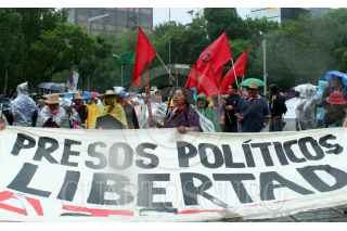 MÉXICO, D.F. 12MAYO2007.- El frente de los pueblos en defensa de la tierra en San Salvador Atenco marcharon del Àngel de la Independencia hacia la residencia oficial de Los Pinos pidiendo libertad para los presos políticos. FOTO: PAOLA HIDALGO/CUARTOSCURO.COM