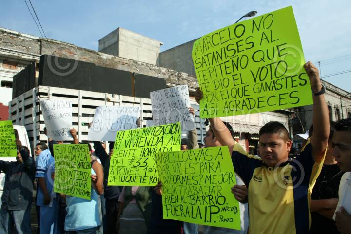 MÉXICO, D.F. 14MAYO2007.- Al término del acto oficial donde se inauguraron los trabajos del Centro Comunitario Tepito, donde antes fuera La Fortaleza, vecinos se manifestaron rodeados por elementos de seguridad. FOTO: PAOLA HIDALGO/CUARTOSCURO.COM