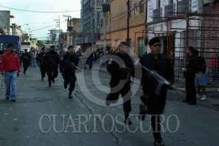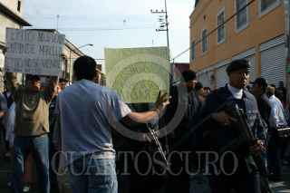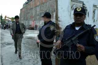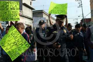 MÉXICO, D.F. 14MAYO2007.- Al término del acto oficial donde se inauguraron los trabajos del Centro Comunitario Tepito, donde antes fuera La Fortaleza, vecinos se manifestaron rodeados por elementos de seguridad. FOTO: PAOLA HIDALGO/CUARTOSCURO.COM
