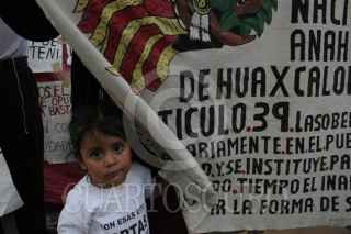 MÉXICO, D.F. 14MAYO2007.- Un grupo de varias comunidades de Huaxcaleca entre ellos los de Chichiquila en el estado de Puebla estan en plantón frente a las oficinas de la representación del gobierno del estado, en esta ciudad. Exigen atención de las autoridades estatales, para terminar con la violencia, que ejercen "casiques y policias locales" del PRI. Piden alto a la violencia el derecho a organizarse y a defender sus recursos naturales que les quieren arrebatar los hombres poderosos de la zona, entre ellos Marcelino Sedas González, Valentín Sedas González, Ageo Sedas Zacatlan y Fabio Sedas. FOTO: EZEQUIEL TLAXCALA/ CUARTOSCURO.COM