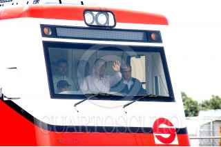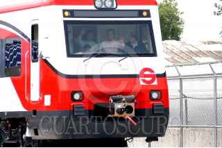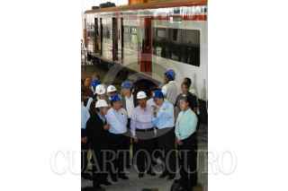 MÉXICO D.F. 14MAYO2007.-El presidente Felipe Calderón Hinojosa acompañadode de Enrrique Peña Nieto gobernador del Estado de México y de Luis Tellez Secretario de Comunicaciónes en la cabina de tren al momento del desplazamiento de prueba que se realizo durante su recorrido de supervisión de los trabajos del Tren Suburbano. FOTO: GUILLERMO PEREA/CUARTOSCURO.COM