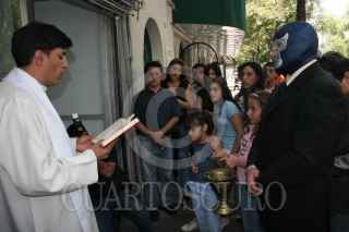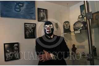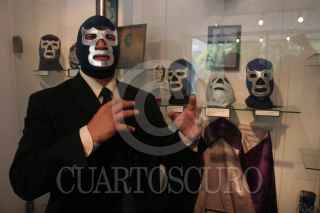 MÉXICO, D.F. 15MAYO2007.-Blue Demon Jr encabezo la inauguración de la galería Blue Demon, en la cual se pretende además de vender mascaras, playeras, libros y juguetes, hacer exposiciones de diversos luchadores con grandes trayectorias para dar difusión a dicho deporte. Actualmente se encuentra instalada la vida de su padre Blue Demon, en donde expone las mascaras que arrebato a lo largo de su carrera, así como su vestimenta y los cinturones que gano. FOTO: EZEQUIL TLAXCALA/ CUARTOSCURO.COM
