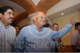 MERÍDA TUCATÁN 21MAYO2007.-El candidato del PAN a la gobernatura del estado Xavier Abreu acompañado por Manuel Espino dirigente nacional de su partido, durante la conferencia ofrecida a los medios de comunicación, con ojos vidriosos y apunto del llanto acepto la derrota en esta contienda electoral y le deseo lo mejor al proximo gobernador. FOTO: GUILLERMO PEREA/CUARTOSCURO.COM