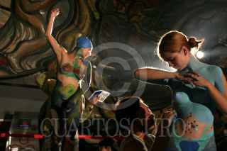 MÉXICO, D.F. 25MAYO2007.- Empiezan los preparativos para el Encuentro de Maquillaje Corporal que se llevará a cabo en el World Trade Center. Las propuestas pictóricas de los participantes estan basadas en los cuatro elementos. FOTO: PAOLA HIDALGO/CUARTOSCURO.COM