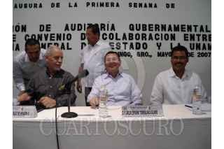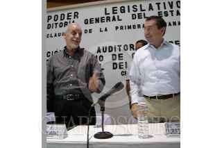 CHILPANCINGO, GUERRERRO. 25MAYO2007.- Se realizó la "Clausura de la Primer Semana de Capacitacion de Auditoria Gubernamental" y Firma de Convenio de Colaboracion entre la Auditoria General del Estado y la UNAM, a la cual asistio el gobernador del estado Zeferino Torreblanca Galindo, el auditor superior de la federacion Arturo Gonzalez de Aragon, el auditor general del estado Ignacio Rendon Romero y el presidente del Tribunal Superior de Justicia Edmundo Roman Pinzon. En la imagen el auditor superior de la federacion Arturo Gonzalez de Aragon y el gobernador del estado Zeferino Torreblanca Galindo durante el evento. FOTO: OSCAR AlVARADO/ CUARTOSCURO.COM