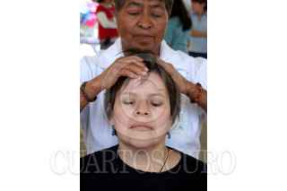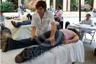 MÉXICO, D.F. 26MAYO2007.- En el parque México se instaló una feria para la mujer organizada por el Instituto de la mujer del Distrito Federeal. Una asistente recibe una sesión de masoterapia. FOTO: PAOLA HIDALGO/CUARTOSCURO.COM