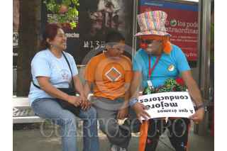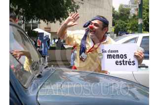 MÉXICO, D.F. 26MAYO2007.- Con risas y buen humor participaron integrantes de la agrupación risoterapia.org en la esquina Félix Cuevas e Insurgentes para invitar a conductores y transeúntes a mejorar la convivencia y mantener una actitud de respeto, tolerancia y cordialidad en las calles. FOTO: PATRICIA MORALES/CUARTOSCURO.COM