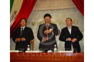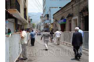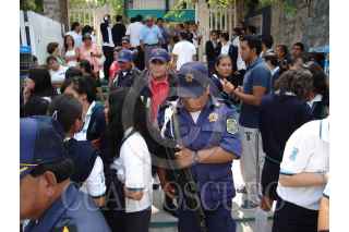 CHILPANCINGO, GUERRERO, 30MAYO2007.- Aspecto del primer informe de labores del presidente del Tribunal Superior de Justicia (TSJ) Edmundo Roman Pinzon al cual asistio como invitado el gobernador del estado Zeferino Torreblanca Galindo. En la imagen personal de seguridad del gobernador del estado Zeferino Torreblanca Galindo, cerraron los alrededores del Tribunal Superior de Justicia (TSJ) con vallas metalicas y resguardaron en todo momento el lugar. FOTO: OSCAR ALVARADO/CUARTOSCURO.COM