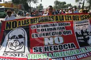MÉXICO, D.F. 1JUNIO2007.- Cientos de maestros integrantes del STUNAM, marcharon de Zaragoza a la Camara de Diputados, en protesta por las reformas a la ley del ISSSTE, causando graves problemas viales. FOTO: EZEQUIEL TLAXCALA/CUARTOSCURO.COM