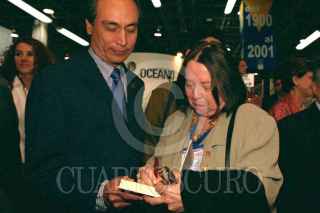 La escritora brasileña y premio Juan Rulfo, Nélida Piñón, firmando un libro durante en la inauguración de la XV Feria Internacional del Libro de Guadalajara. FOTO: Natalia Fregoso/CUARTOSCURO.COM