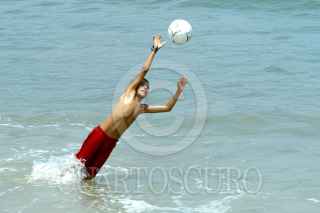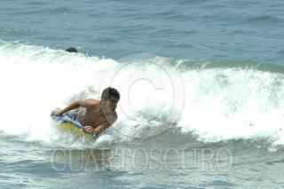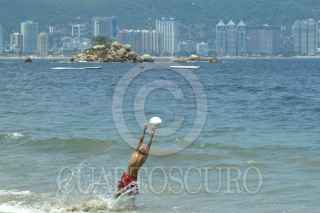 ACAPULCO, GUERRERO, 17JUNIO2007.- Un surfista aprovecha las olas de playa de Hornos para prácticar con su tabla. FOTO: ERIC MIRALRIO/CUARTOSCURO.COM