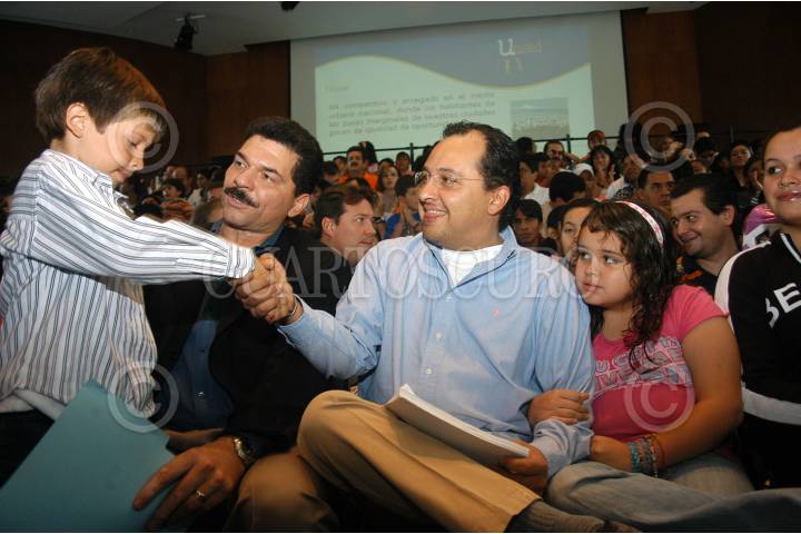 MÉXICO D.F. 17JUNIO2007.-El diputado Gerardo Pliego en las instalaciones del CEN del PAN donde con una función de lucha libre, celebraron el día del padre.En el imagen el diputado posa para la foto con los luchadores. FOTO: GUILLERMO PEREA/CUARTOSCURO.COM
