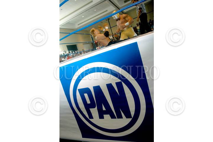 MÉXICO D.F. 17JUNIO2007.-El diputado Gerardo Pliego en las instalaciones del CEN del PAN donde con una función de lucha libre, celebraron el día del padre.En el imagen el diputado posa para la foto con los luchadores. FOTO: GUILLERMO PEREA/CUARTOSCURO.COM
