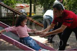MÉXICO D.F. 17JUNIO2007.-Un padre de famila ayuda a su hijo a subir a una barda después de recoger una pelota, esto durante la celebración el día del padre. FOTO: GUILLERMO PEREA/CUARTOSCURO.COM