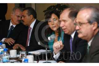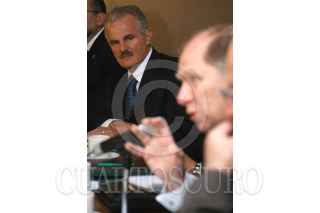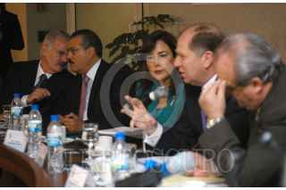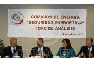 MÉXICO D.F. 18JUNIO2007.-Los senadores Francisco Labastida, Manlio Fabio Beltrones, Yeidckol Polevnsky y Carlos Morales director de exploraciones de PEMEX, durante la realización del foro de "Seguridad Energética" realizado en las instalaciones del Senado de la República. FOTO: GUILLERMO PEREA/CUARTOSCURO.COM