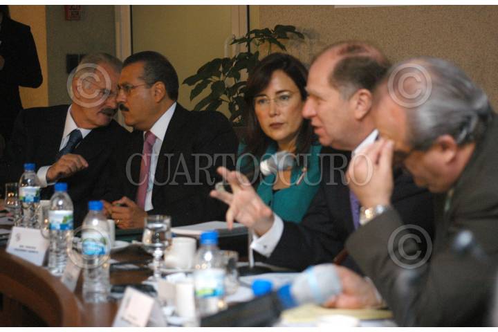 MÉXICO D.F. 18JUNIO2007.-Los senadores Francisco Labastida, Manlio Fabio Beltrones, Yeidckol Polevnsky y Carlos Morales director de exploraciones de PEMEX, durante la realización del foro de "Seguridad Energética" realizado en las instalaciones del Senado de la República. FOTO: GUILLERMO PEREA/CUARTOSCURO.COM