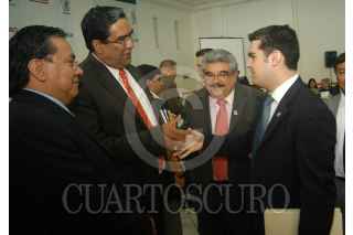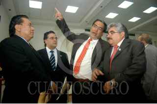 MÉXICO D.F. 19JUNIO2007.-Los diputados locales Isaias Villa Gónzalez del PRD Mauricio López Vázquez director de fundación Colosio del D.F. el cual es saludado por Jorge Triana del PAN y Jorge Shafino del PRI, durante su asistencia al foro "Temática para una Reforma Electoral" llevado acabo en las instalaciones del PRI capitalino. FOTO: GUILLERMO PEREA/CUARTOSCURO.COM