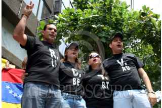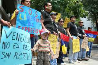 MÉXICO, D.F. 23JUNIO2007.- Un grupo de venezolanos se manifestó a las afueras de la embajada de dicho país con motivo de la clausura de la cadena televisiva RCTV en el marco de la celebración del día de la libertad de prensa. FOTO: PAOLA HIDALGO/CUARTOSCURO.COM