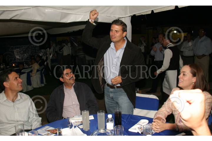 ZACATECAS, ZACATECAS, 23JUNIO2007.- Cuauhtemóc Calderón, candidato a la presidencia municipal de Zacatecas, Mauel Espino, Presidente Nacional del PAN y Humberto Aguilar, Senador, sostuvieron una cena con simpatizantes ayer por la noche, para impulsar su campaña previó a la elecciones locales que se celebrarán el próximo 1 de Julio. FOTO: MOISÉS PABLO/CUARTOSCURO.COM