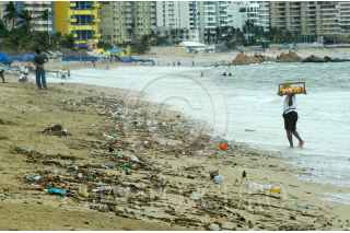 ACAPULCO, GUERRERO 25JUNIO2007.- Cientos de kilos de basura fue expuesta por la marea en la playa, luego de una noche de intensa lluvia. FOTO: ERIC MIRALRÍO/CUARTOSCURO.COM