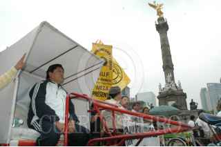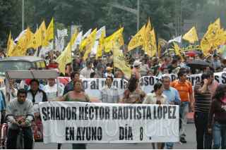 MÉXICO, D.F., 25JUNIO2007.- El Senador del PRD, Héctor Miguel Bautista López, quien cumplió este lunes el octavo día en huelga de hambre, encabezó una marcha de las instalaciones de la Sedesol a la residencia oficial de Los Pinos. FOTO: ISRAEL VERA/CUARTOSCURO.COM