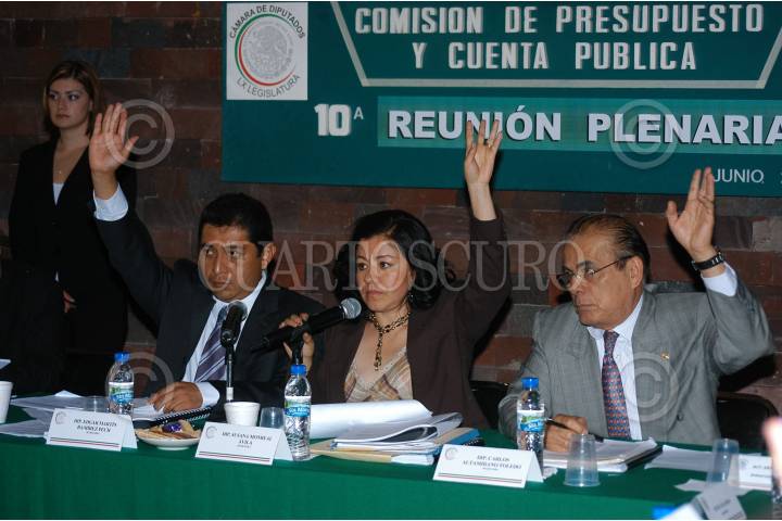 MÉXICO D.F. 26JUNIO2007.-Los Diputados Edgar Martín, Susana Monrreal Ávila y Carlos Altamirano Toledo, emiten su voto durante la sesión de trabajo de la Comisión de Presupueto y Cuenta Pública en la Cámara de Diputados. FOTO: GUILLERMO PEREA/CUARTOSCURO.COM