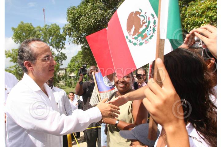 BELMOPAN, BELICE. 30JUNIO2007.- Felipe Calderón Hinojosa, presidente de México durante la reunión con Sir. Colville Young, gobernador general de Belice, que tuvo ligar en la casa Belice. FOTO: ALFREDO GUERRERO/CUARTOSCURO.COM