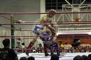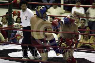 VILLAHERMOSA, TABASCO, 01JULIO2007.- En el Palacio de los Deportes se realizó una función de Muay Thai denominada "La noche de los Guerreros", ahí, los gladiadores combinaron golpes con puños, patadas, codos, rodillas y cabeza, y aunque este deporte es demasiado riesgozo, en el estado empieza a adquirir popularidad. FOTO: MARCO POLO GUZMÁN HERNÁNDEZ/CUARTOSCURO.COM