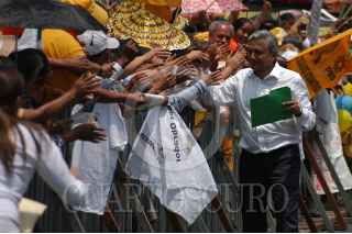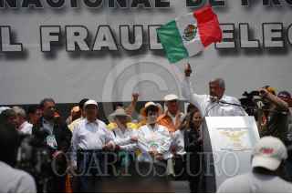 MÉXICO, D.F. 01JULIO2007.-El ex-candidato a la presidencia de la república Andres Manuel López Obrador durante su participacion en la Jornada Nacional de Protesta Contra el Fraude Electoral que se realizó en el Zócalo de la ciudad. FOTO:GULLERMO PEREA/CUARTOSCURO.COM