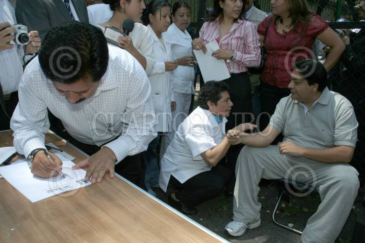 MÉXICO, D.F. 09JULIO2007.- El senador perredista Hector Bautista, quien se mantiene en huelga de hambre acudió a las inmediaciones de la residencia oficial de Los Pinos, donde se sacó sangre para elaborar una carta dirijida al presidente Felipe Calderón, que amarró a unos globos blancos y los soltó al aire. FOTO: PAOLA HIDALGO/CUARTOSCURO.COM