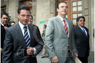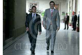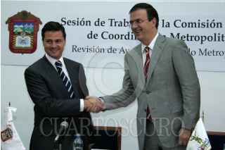 MÉXICO, D.F. 10JULIO2007.- El jefe de goberno capitalino, Marcelo Ebrard Casaubón y el gobernador de Estado de México, Enrique Peña Nieto durante la firma de acuerdo para la creación de la comisión metropolitana de finanzas. FOTO: PAOLA HIDALGO/CUARTOSCURO.COM