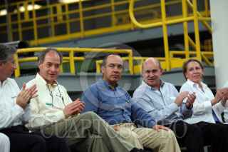 VERACRUZ, VERACRUZ. 10JULIO2007.- El presidente Felipe Calderón Hinojosa, durante la inauguración de la nuave planta de tratamiento térmico Tenaris Tamsa. FOTO: ALFREDO GUERRRO/CUARTOSCURO.COM